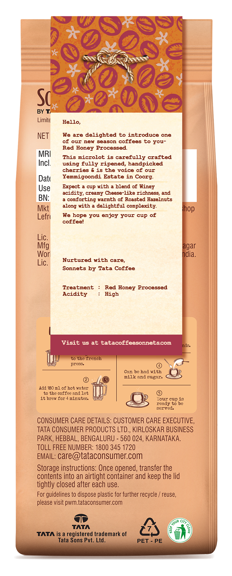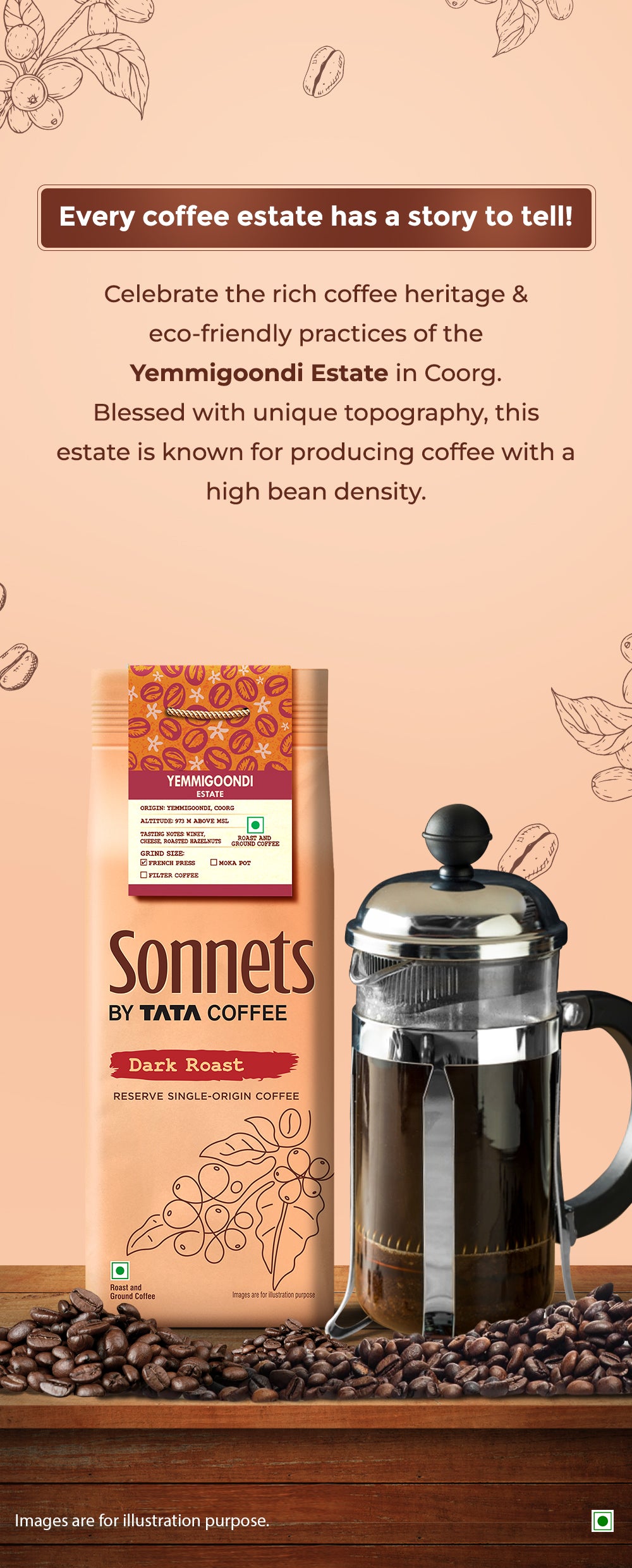 Once said to be the home of large herds of bison, the Yemmigoondi estate in Coorg has a unique topography. It is “bowl” shaped with hills on all sides. Grown in the company of natural springs and nurtured by the salubrious climate; the Yemmigoondi Red Honey Processed Coffee is a unique microlot celebrating the eco-friendly practices that the estate follows.